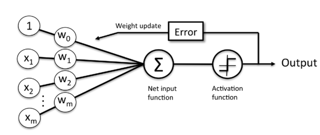 퍼셉트론(Perceptron) 은 맥클러치와 피츠 모델을 바탕으로 만들어 졌지만, 오차 계산하는 학습 메커니즘이 추가 됐다는 점이다